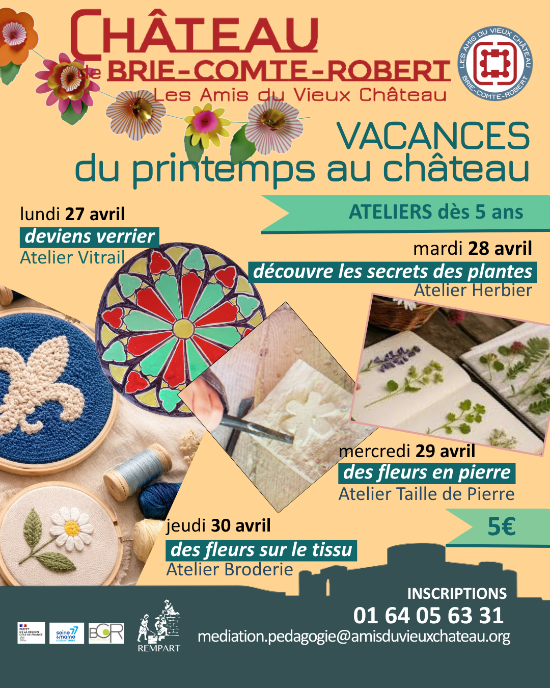 Accueil STAGE DE RESTAURATION DU CHÂTEAU 17 au 26 AVRIL 2026 VACANCES AU CHÂTEAU27-28-29-30 AVRIL 2026 ATELIERS DU MERCREDI 6 MAI et 3 JUIN 2026 NUIT DES MUSÉES 23 MAI 2026 Inscriptions par téléphone au 01 64 05 63 31 ou via le lien suivant : https://forms.gle/GdzBw9QFEha8CRf38
